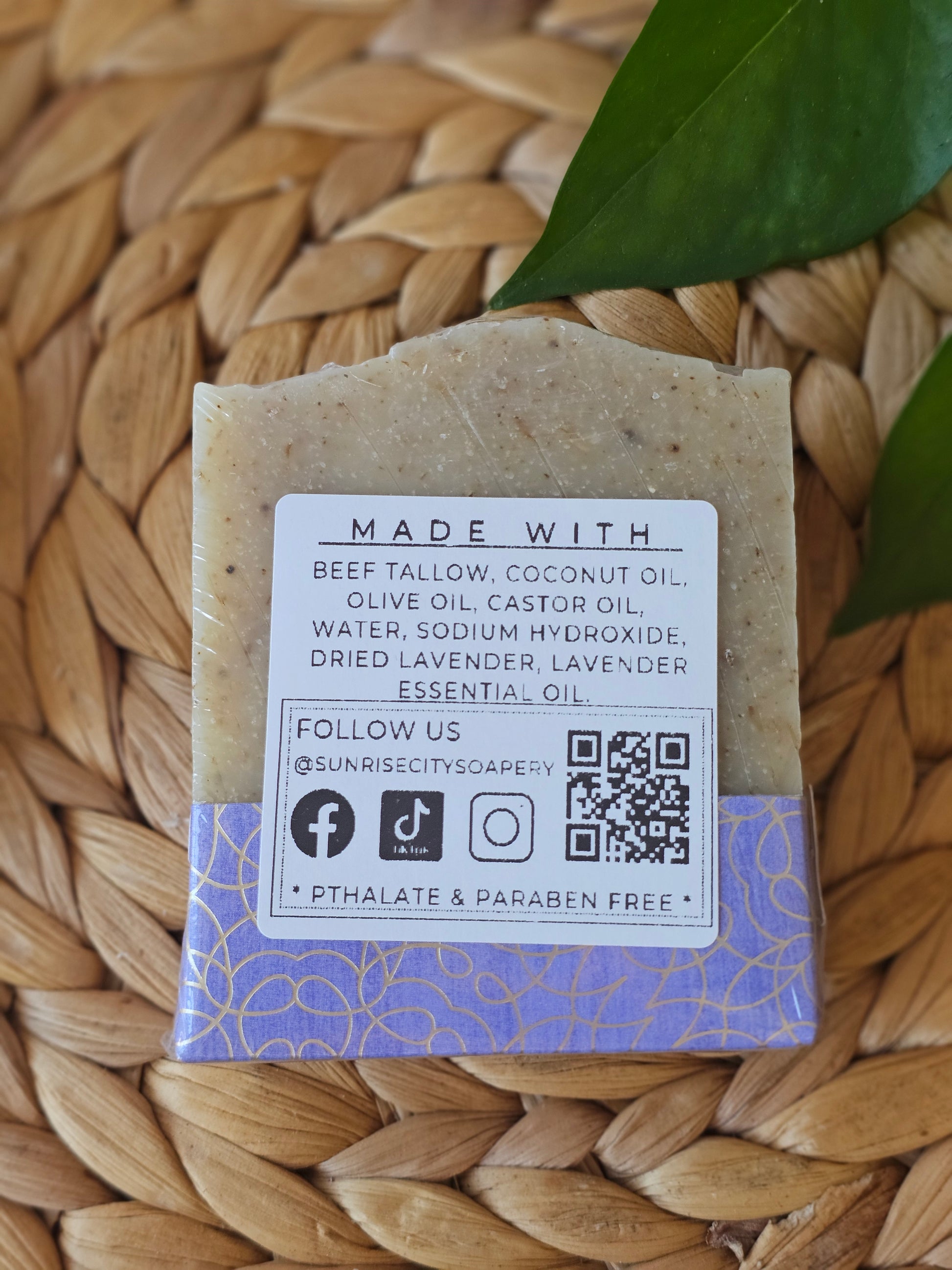 Infused with the natural scent of lavender essential oil and ground lavender, this soap offers a creamy, luxurious, and decadent experience.